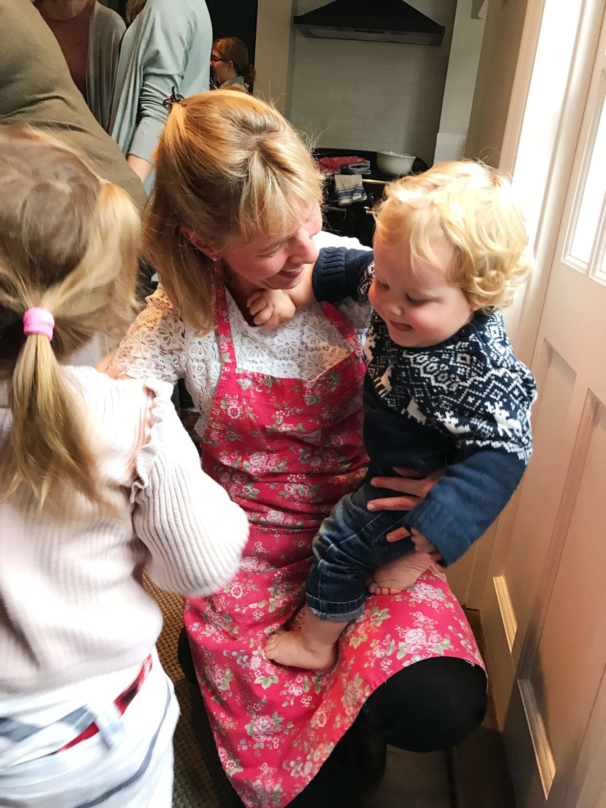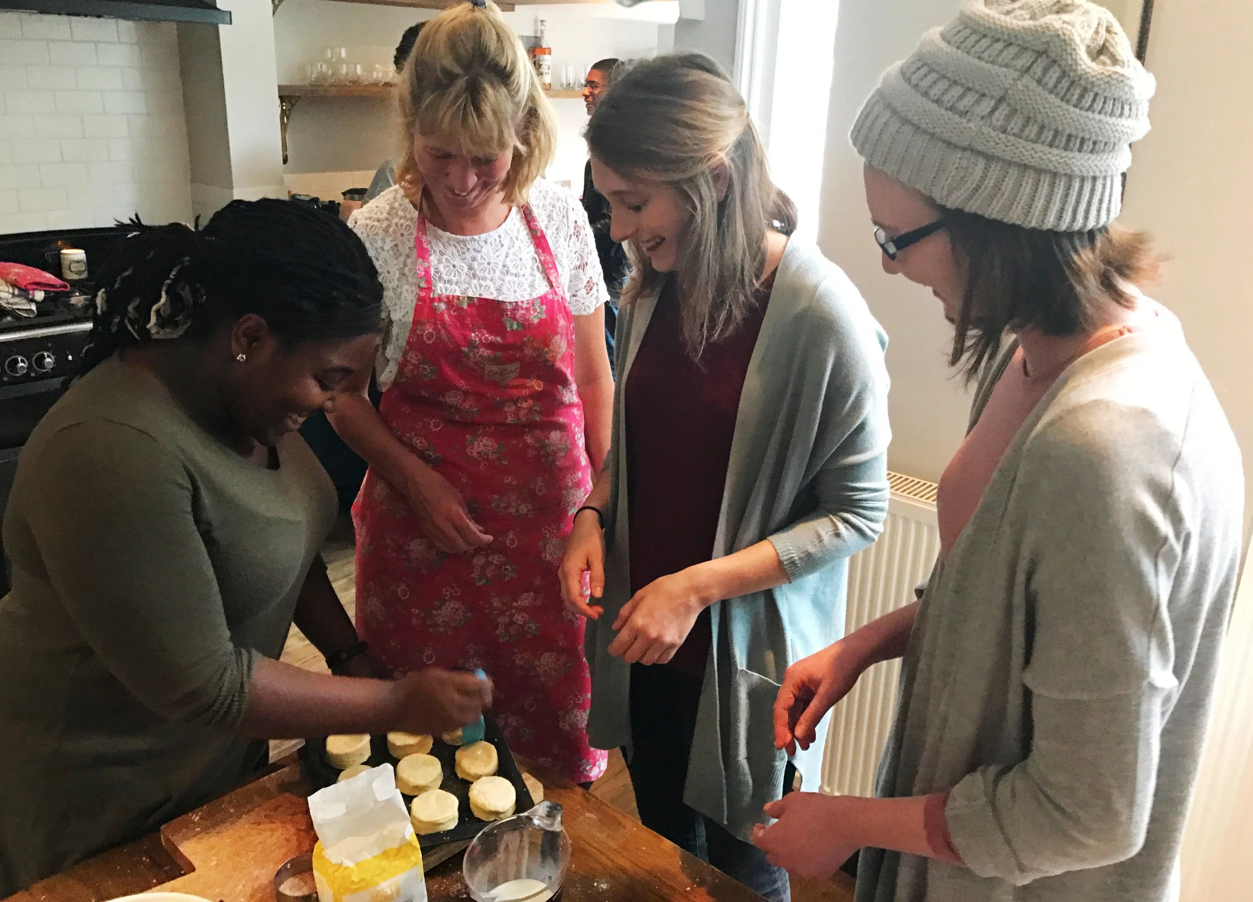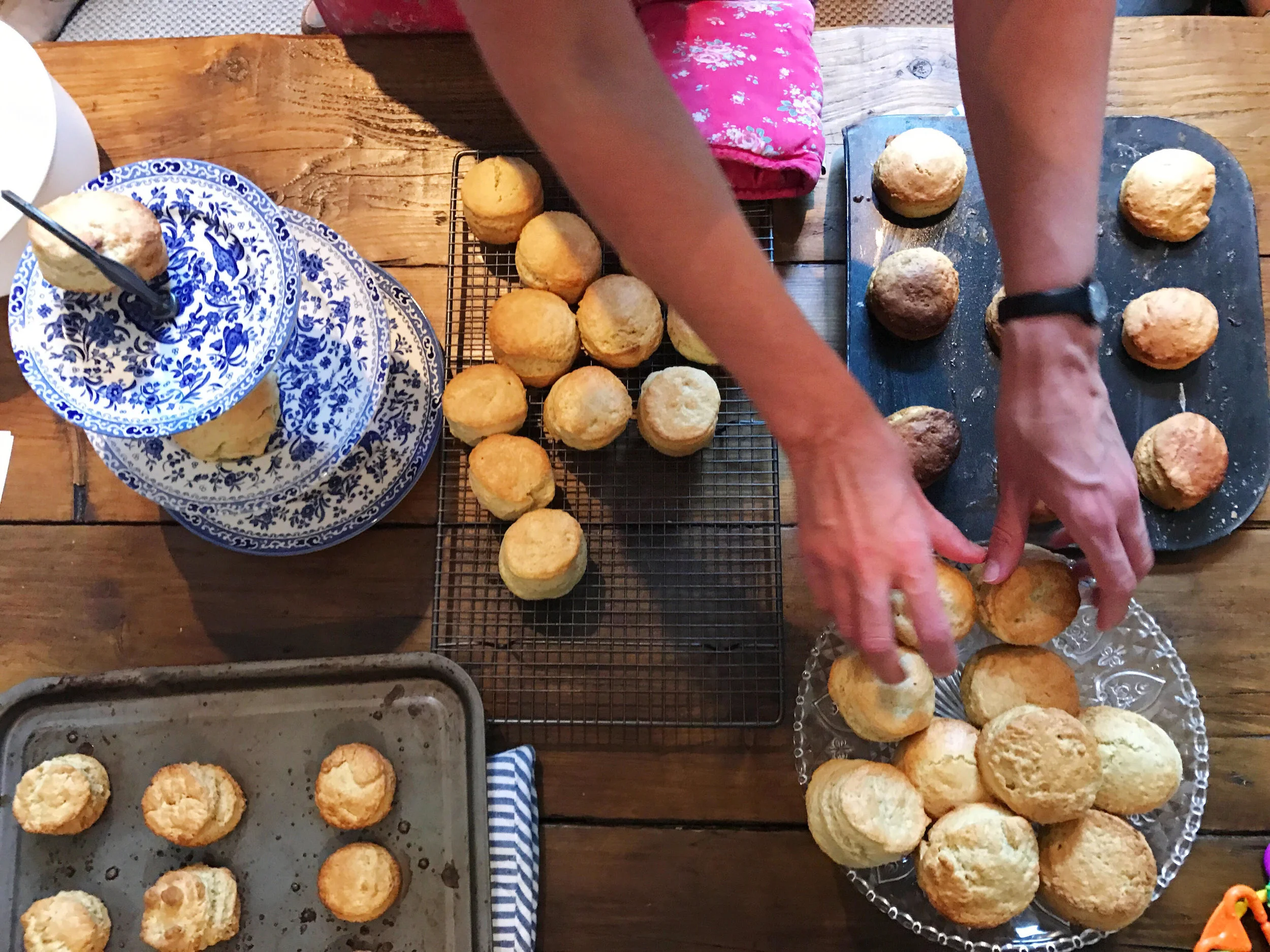 The day was perfect- her in her Cath Kidston apron and matching oven mitt, her cute authoritative statements on scones as someone from Cornwall ("scone" as in gone, and not "scone" as in stone), and watching her wander from group to group helping them roll out the dough to the perfect height before cutting.