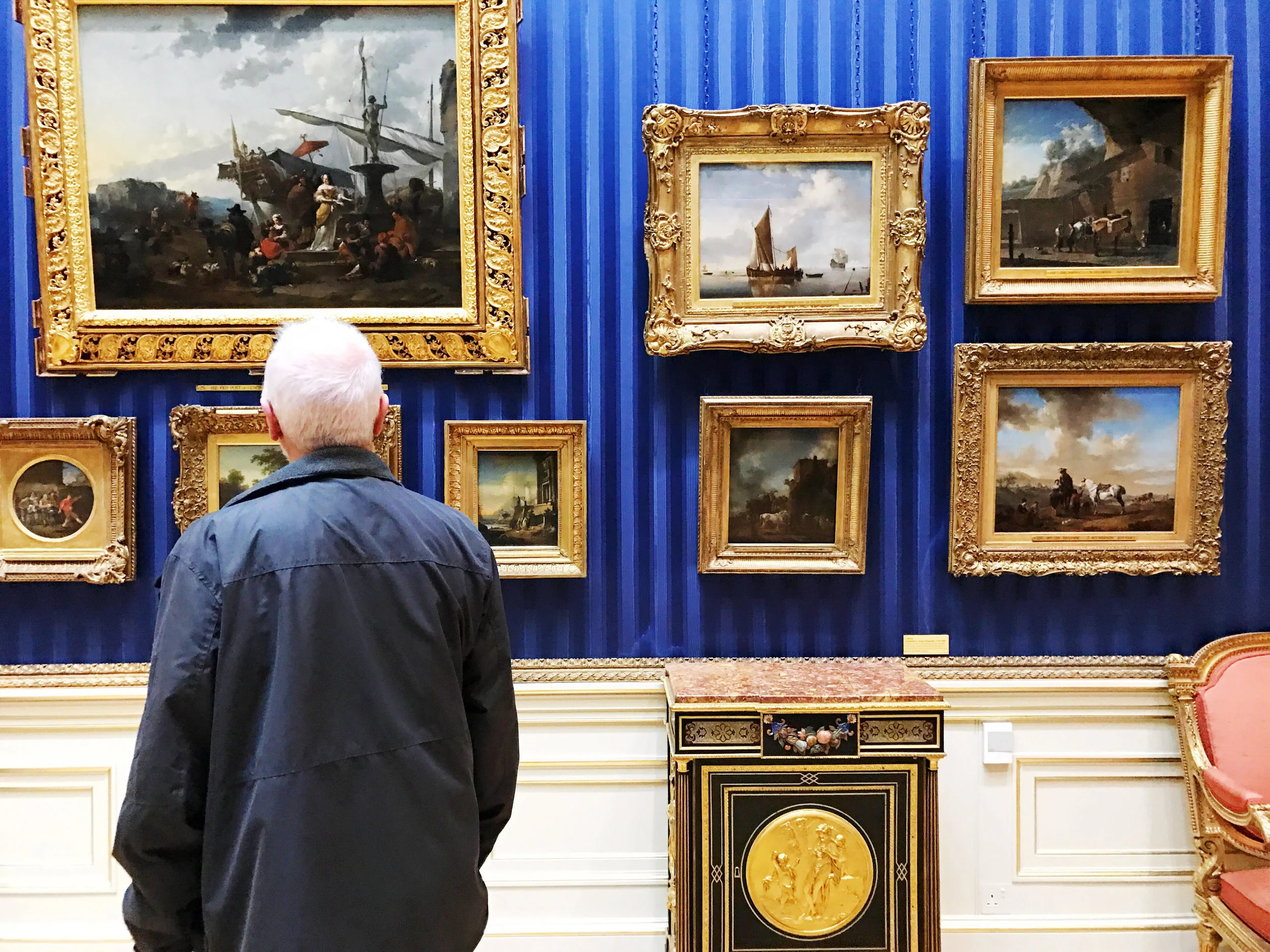 After a quick spin through the ground floor, I followed the signs upstairs promising Dutch paintings. (An area that I'm not well-versed in, but repeatedly drawn to when in an art gallery.) I'm glad I went upwards... because the first floor is where the visit gets really exceptional, as each room is covered in gorgeously bright silk wall coverings and indulgently scattered paintings.