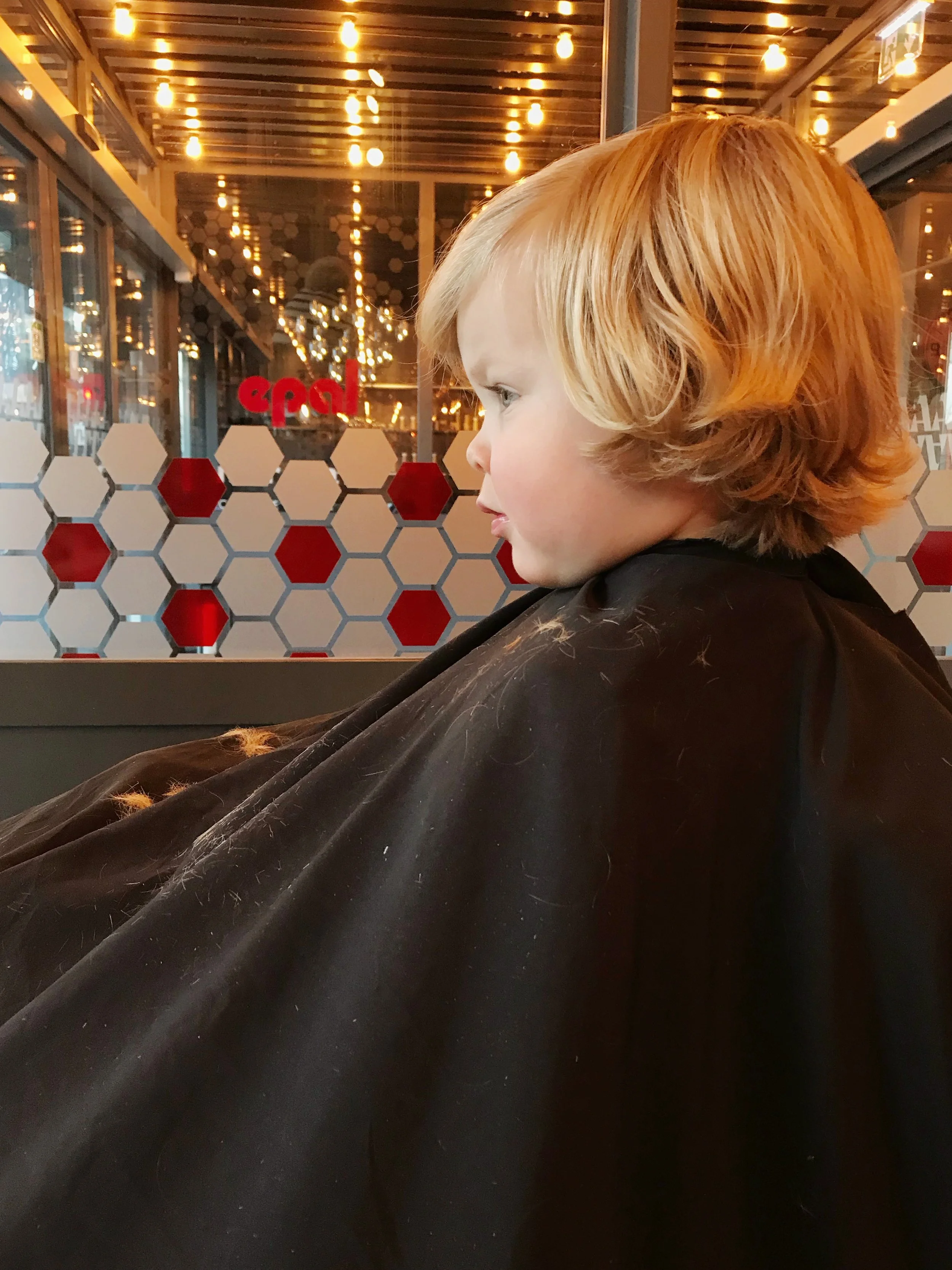 When we arrived, things were running a bit behind. The kind barber offered me a coffee but I declined. As Harrison grew restless, I tried to entertain him. I went with a weird story about a dragon who ate to many fish bones who met a frog with herbal tea... about the time I got to the herbal tea’s secret ingredient (flowers), his eyes shut and he was out for the count. (We just cut out his nap and he’s still adjusting!)