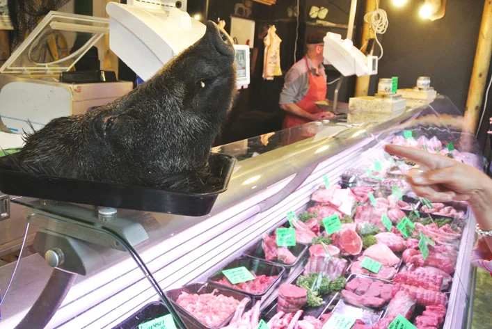a stand that sells meaty sandwiches.